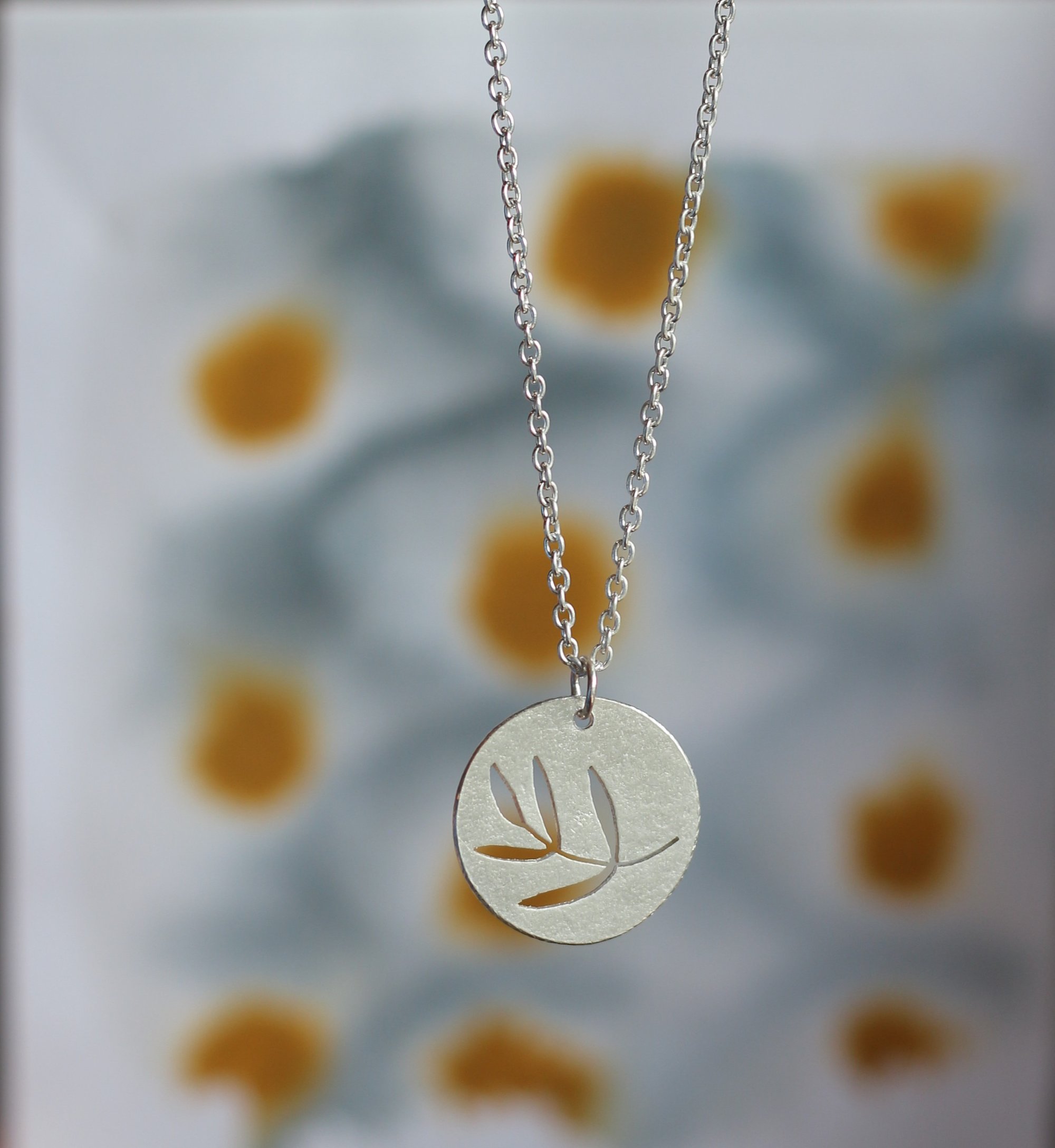 Hand pierced Recycled Silver necklace. Each necklace from the Gather collection is hand cut with a jewellers piercing saw, making each pattern unique. These pieces are made to be treasured and worn everyday with love.